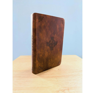 Bound in tactile soft brown imitation leather and debossed with Celtic-inspired patterns, this Bible honours the tradition and wisdom of early Christian tradition.