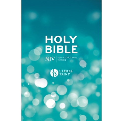 Robust hardback large print NIV Bible with British spelling and an 11pt font size.