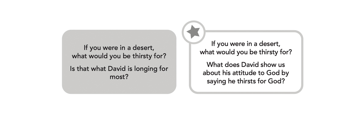 If you have younger or less confident children only, ask the questions on the left.