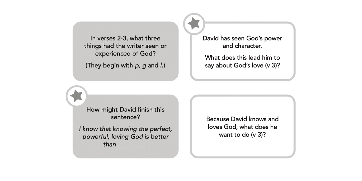 Even when life was dangerous and difficult, David’s heart and mind were full of God. His mouth was full of praise. That’s because David knew he already had the most amazing gift of all: God himself. Knowing God is the best gift ever.