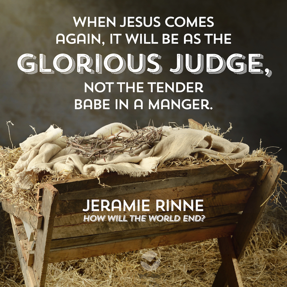 "When Jesus comes again, it will be as the glorious judge, not the tender babe in a manger." (Jeramie Rinne, How will the world end?)