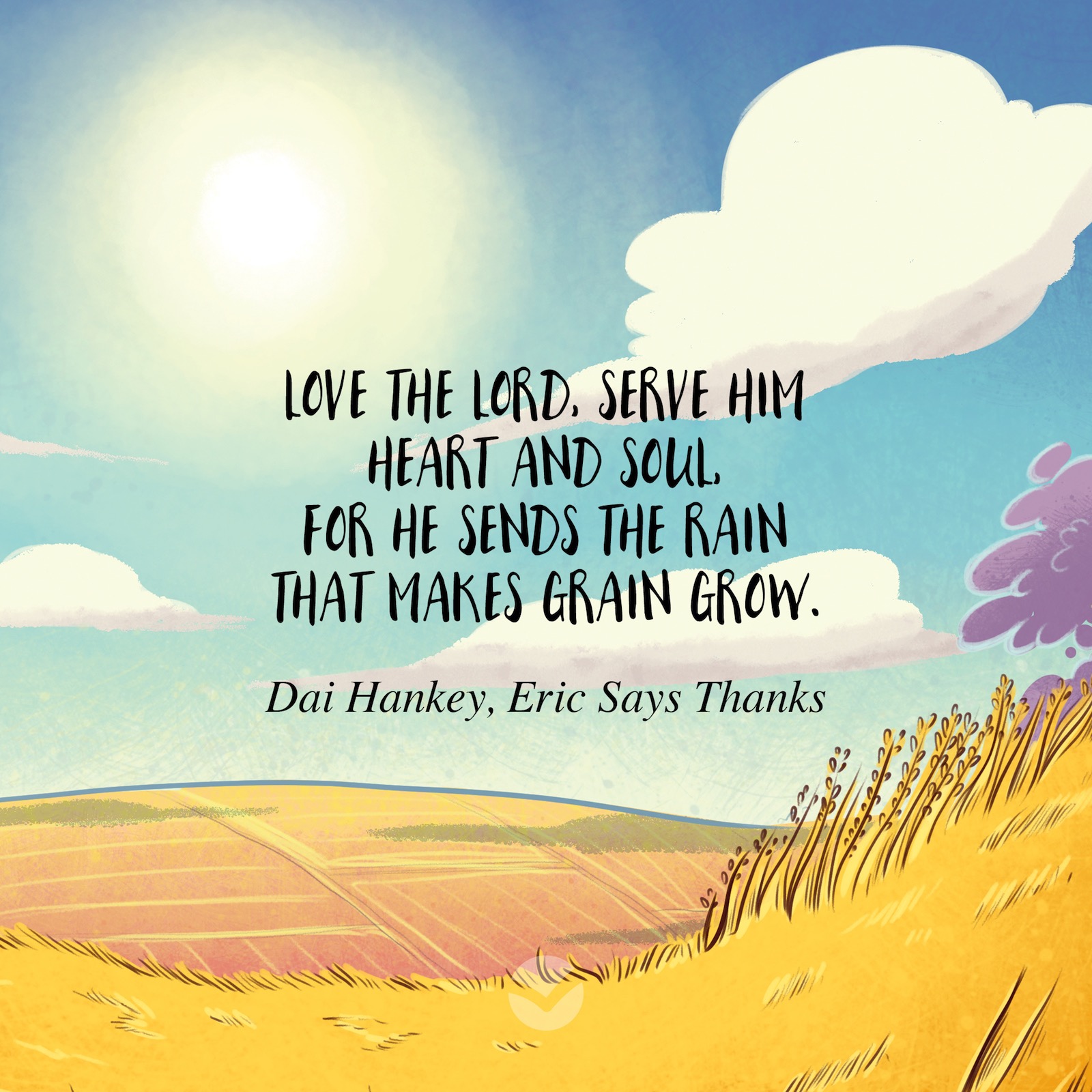 "Love the Lord, serve him heart and soul, for he sends the rain that makes grain grow." (Dai Hankey, Eric Says Thanks)