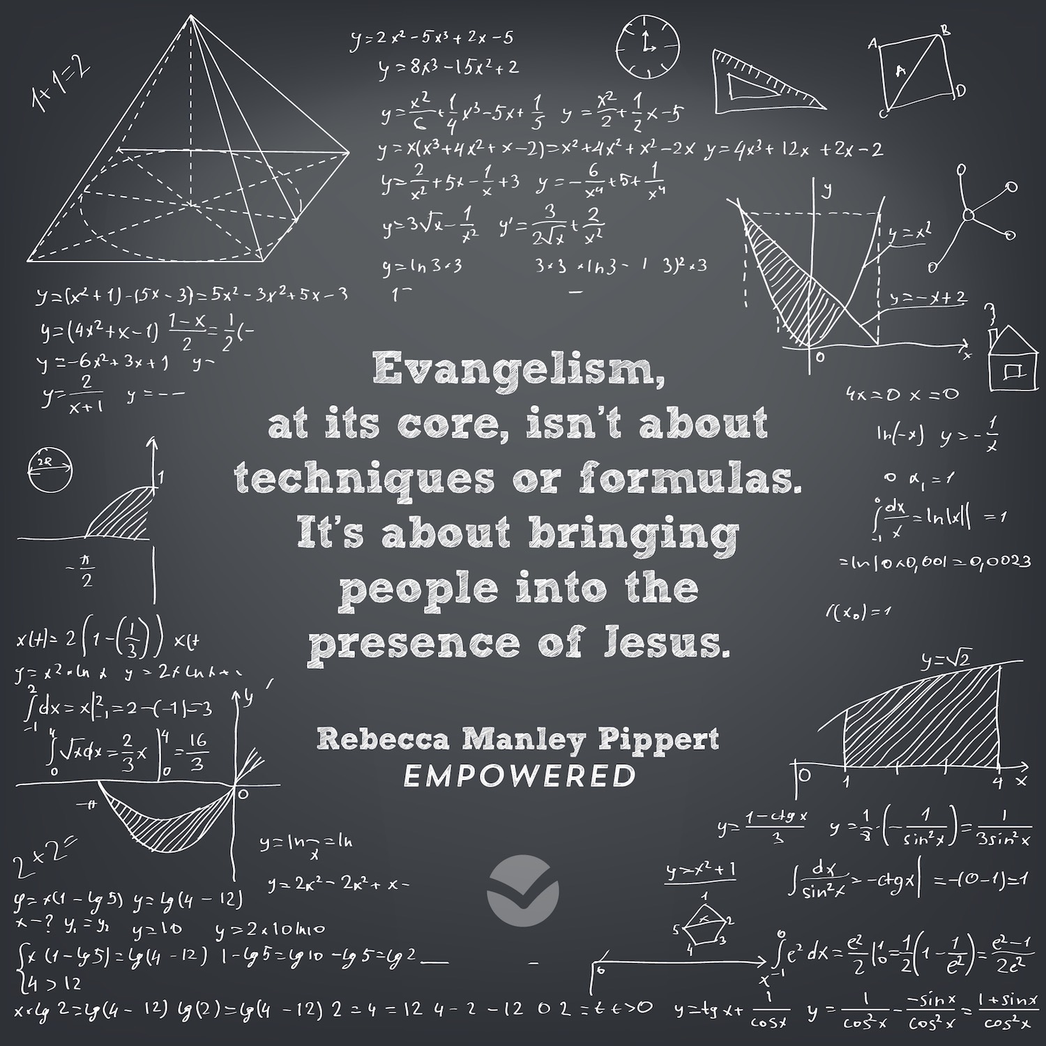 "Evangelism, at its core, isn't about techniques or formulas. It's about bringing people into the presence of Jesus." (Rebecca Manley Pippert, Empowered)