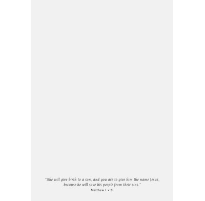 Text inside reads: "She will give birth to a son, and you are to give him the name Jesus, because he will save his people from their sins."
