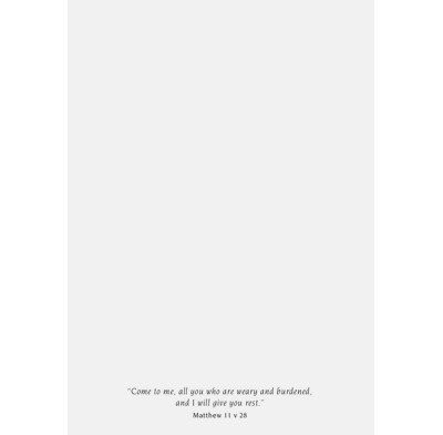 Text inside reads: "Come to me, all you who are weary and burdened, and I will give you rest." Matthew 11 v 28