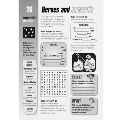This devotional takes kids straight into the word and overviews their content with most important verses and meanings. The only change I’d like is for the activities to be more variance in the word activities. My 7 year old doesn’t quite read and write to the level this book requires, but my 9 year old does well (both mature and far long for their respective ages in these skills).