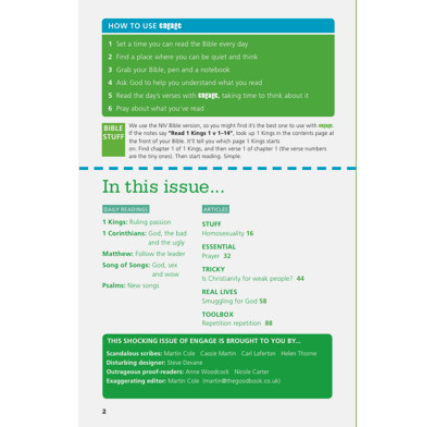 Issue 14 of Engage - daily Bible reading notes for teenagers. This issue looks at 1 Kings, Song of Songs, Matthew and 1 Corinthians.
