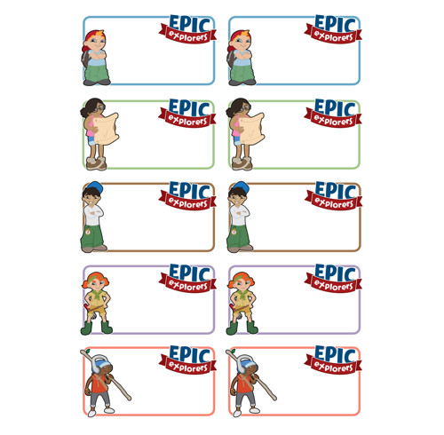 This pack of 50 name stickers is designed to support your Epic Explorers course.