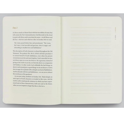 ESV Prayer Journals guide your study of a foundational Scripture topic over 30 days and create space for writing and prayer―turning your quiet time into a meditation on God’s Word. Each week opens with an overview related to that week’s passage, followed by 5 days of teaching and prayer prompts. Each journal also includes space for writing, clear definitions of biblical terms, and artwork by Ruth Chou Simons.