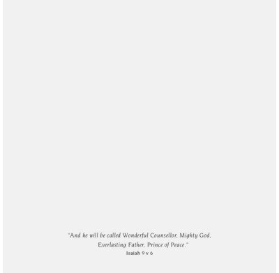 Text inside reads, And he will be called Wonderful Counsellor, Mighty God, Everlasting Father, Prince of Peace.