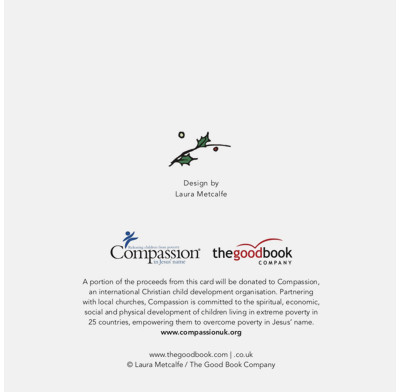 A portion of the proceeds from the sale of this card will go to Compassion International, one of the world’s leading child development and advocacy organisations.