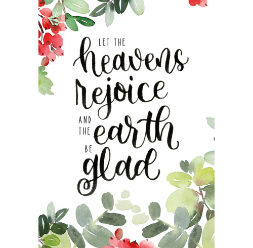 Text inside reads: "Let the heavens rejoice, let the earth be glad!" Psalm 96:11
