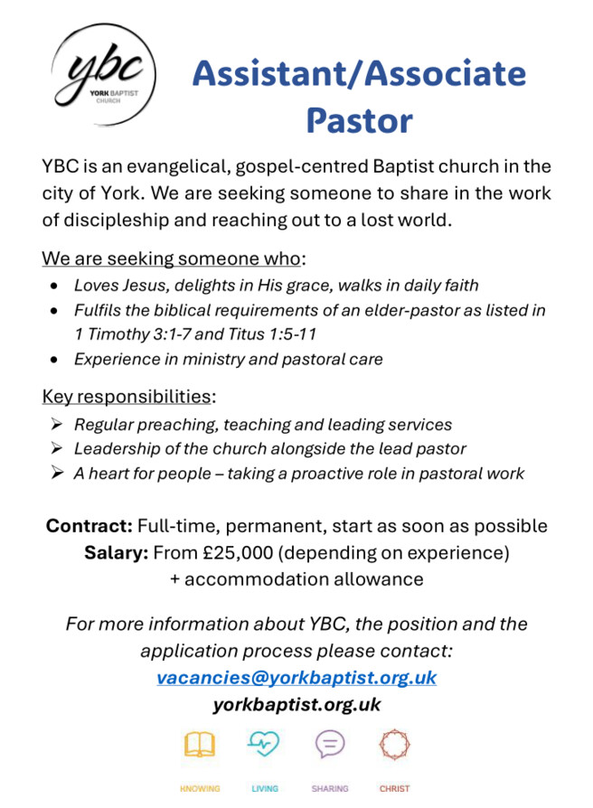 Email: vacancies@yorkbaptist.org.uk