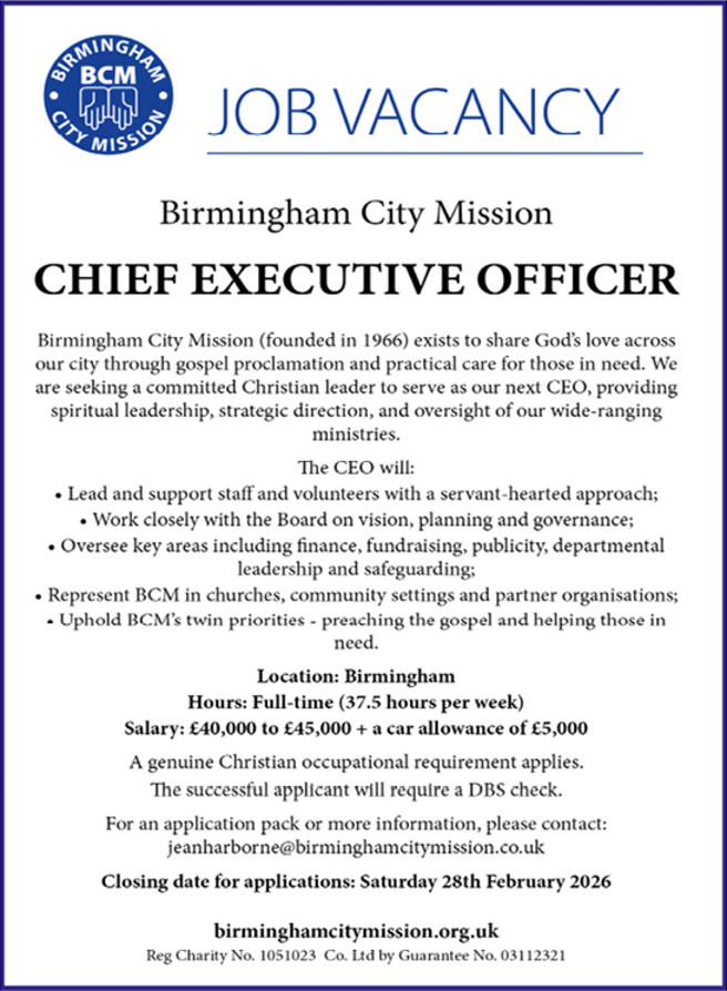 Email: jeanharbourne@birminghamcitymission.co.uk