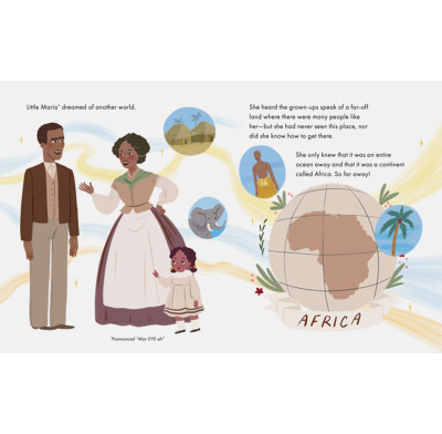 I highly recommend the entire Do Great Things for God series! This book is beautiful!!! Maria was born a slave and dreamed of faraway places. After the Civil War, she was freed and became a missionary. This beautifully illustrated book tackles difficult topics with grace in an age-appropriate way for young children. Maria is a wonderful role model for our children as she demonstrates boldness in standing up for the defenseless.