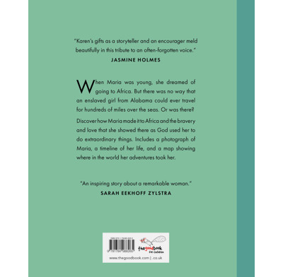 At the back of the book is a real-life picture of Maria, as well as a timeline of life events, discussion questions, a labeled world map to follow Maria across the ocean, and pictures of the free resources from The Good Book Company that accompany this book.