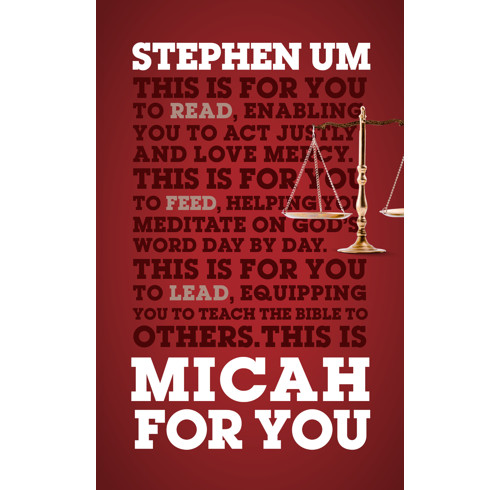 Micah for You is a very helpful lay commentary written by an experienced and expert Bible teacher. Stephen Um takes you through the argument of this reforming prophet, not only making sense of the flow of the book but expertly unpacking the nature of sin and idolatry, the threat of judgment, and the need for hope. Micah is well known for his passionate plea for justice and integrity, and through Dr. Um's exposition Micah, though long dead, still speaks to our broken generation. Particularly helpful are the ways in which Dr. Um draws carefully thought-through connections between this prophet in ancient Israel and the Lord Jesus Christ and his gospel.
