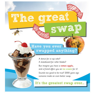 A colourful leaflet for children with Bible passages, puzzles and questions looking at the great swap when Jesus died.