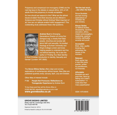 Polyamory and consensual non-monogamy (CNM) are the next big issue in the debate on sexual ethics. 34% of UK adults think that polyamory is morally acceptable.So how should we respond to this? What are the ethical issues at stake? And what reources are we offered in Scripture and Christian ethical thinking? Most important of all, how can our attitude enable fruitful engagement? This outstanding study addresses these vital questions.