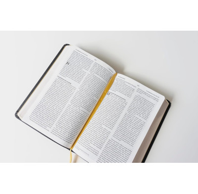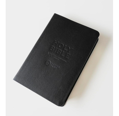 This black leather NIV Bible in personal size features a clear, readable 8.5pt text, a ribbon marker and British spelling.