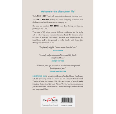 The period of time between middle age and old age has not yet been given a name, but with characteristic wisdom, warmth and insight, Christopher Ash has provided us with a navigational map to chart our progress. The unique privileges, challenges and opportunities of this era are to be enjoyed rather than endured as we follow Jesus and seek to make a difference for his kingdom.
