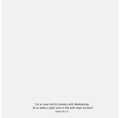 Text inside reads: "Let us come into his presence with thanksgiving; let us make a joyful noise to him with songs of praise!" Psalm 95 v 2.