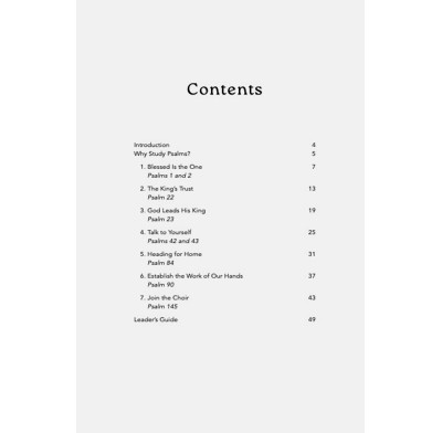 Easy-to-lead, 7-session Bible study on selected psalms by Christopher Ash and Alison Mitchell. Part of the bestselling Good Book Guide series, with over 1 million copies sold.