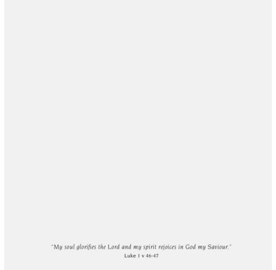 Text inside reads: "My soul glorifies the Lord and my spirit rejoices in God my Saviour." Luke 1 v 46-47.