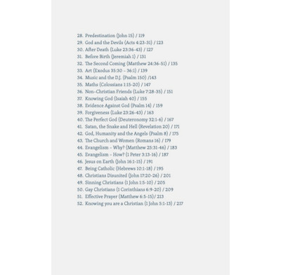 Biblical answers to 52 questions from teenagers covering issues from society, education, the Bible, theology and God.