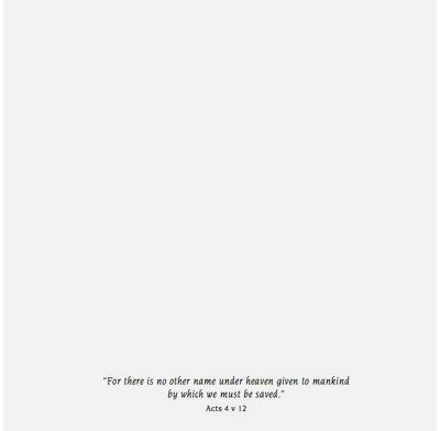 Text inside reads: "for there is no other name under heaven given to mankind by which we must be saved." Acts 4:12.