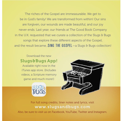 "The riches of the Gospel are immeasurable. We get to be in God’s family! We are transformed from within! Our sins are forgiven, our wounds are made beautiful, and our joy never ends. Last year, our friends at The Good Book Company in the U.K. requested that we curate a collection of the Slugs & Bugs songs that explore these different aspects of the Gospel, and the result became 'Sing the Gospel' - a Slugs and Bugs collection."