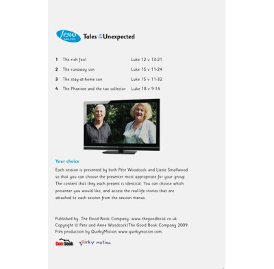 Use the Tales of the Unexpected DVD and booklet to unpack some truly unexpected words of Jesus, and introduce ordinary people to this most amazing man. Presented by Pete Woodcock and Lizzy Smallwood, two experienced Christian communicators.