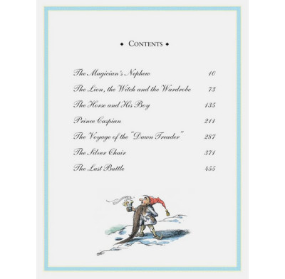 This edition presents the seven books; The Magician’s Nephew, The Lion, the Witch and the Wardrobe, The Horse and His Boy, Prince Caspian, The Voyage of the Dawn Treader, The Silver Chair, and The Last Battle unabridged and arranged in C.S. Lewis’s preferred order, featuring full-colour artwork by the original illustrator, Pauline Baynes.