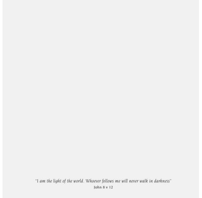 Text inside reads: "I am the light of the world. Whoever follows me will never walk in darkness" John 8 v 12