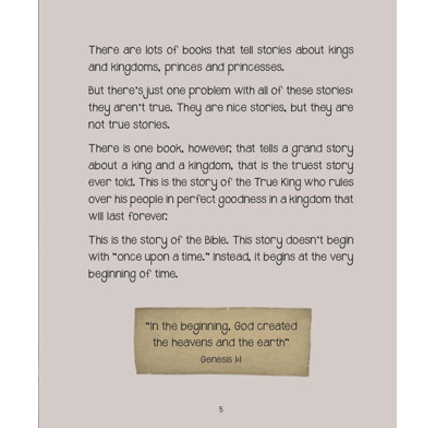 There are lots of books that tell stories about kings and kingdoms, princes and princesses... There is only one book, however, about a king and a kingdom that is the truest story ever told.