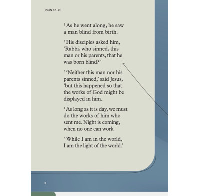 Each double-page displays the Bible text on the left-hand side, supported by helpful notes with background information, questions and answers to explain the passage on the right-hand side. This means that both you and your friend read and chat about the same material together.