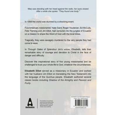Written while she was still a missionary in South America and at the request of the men's families, Through Gates of Splendor was Elisabeth Elliot's personal account of the final mission of these five courageous men. Filled with quotations from letters, material from personal journals, a wealth of photographs, and an epilogue update, this reprint of the original hardcover edition tells a lasting story of God's grace, unconditional love, and great courage.